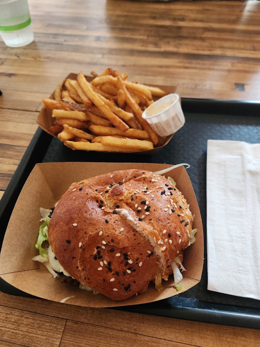 Came on new years was hungover and ordered a regular block burger and a Croque Garcon and regular fries. Will be back I love a good burger. Ordering then finding seating is a little weird and they don’t have a ton of seating but sitting in front of the window people watching was fun. Unlimited refills on drinks was good. They don’t serve liqour but have beer
