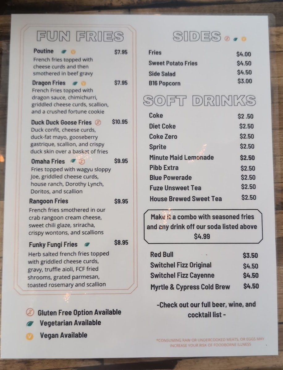Expect a variety of sandwiches and burgers built from fresh, carefully sourced ingredients, with standout dishes like the Farm Fried Chicken Thighs and the inventive Croque Garcon Burger showing the kitchen’s creativity. For those leaning into comfort with a twist, options such as the Poutine Burrito or Duck Duck Goose Fries provide playful takes on familiar favorites. Vegetarians and vegans also find satisfying choices, ensuring everyone can find something appealing.