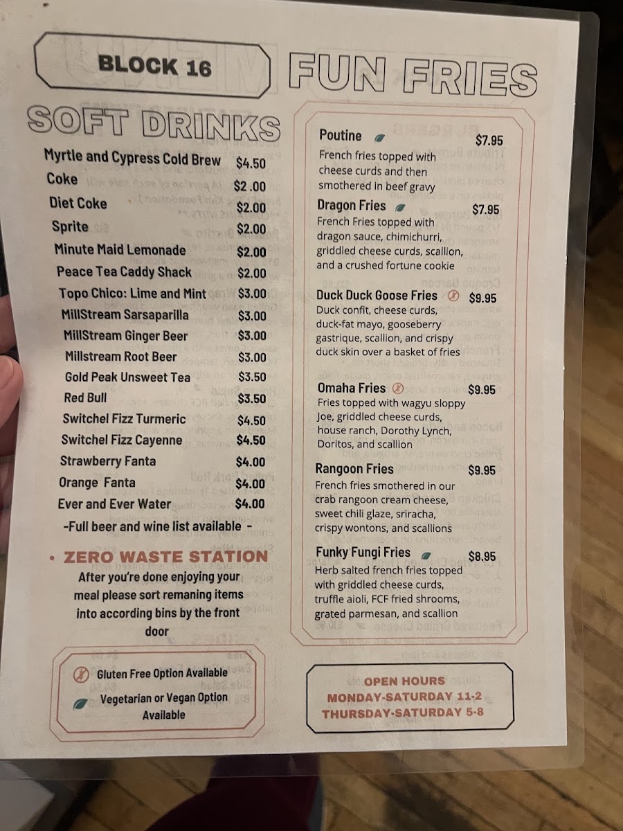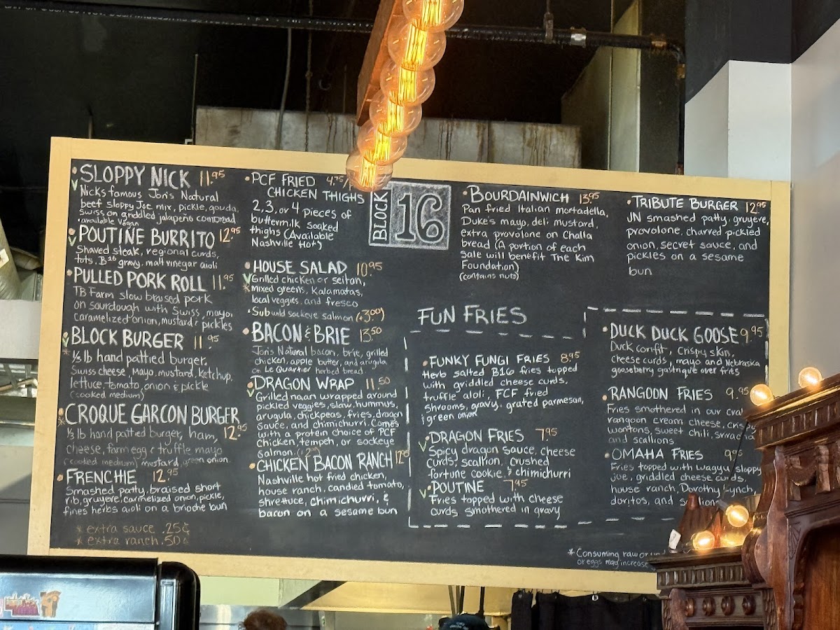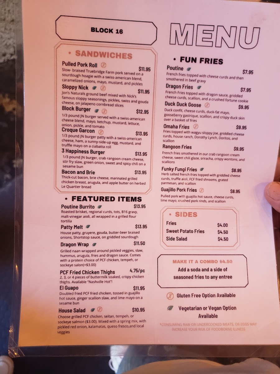 Block 16 offers a menu that blends classic American comfort food with thoughtful, modern twists, perfect for casual meals any time of day. Whether you're grabbing a quick takeout sandwich or settling in for a relaxed meal, the menu is thoughtfully crafted to complement its laid-back, neighborhood vibe.